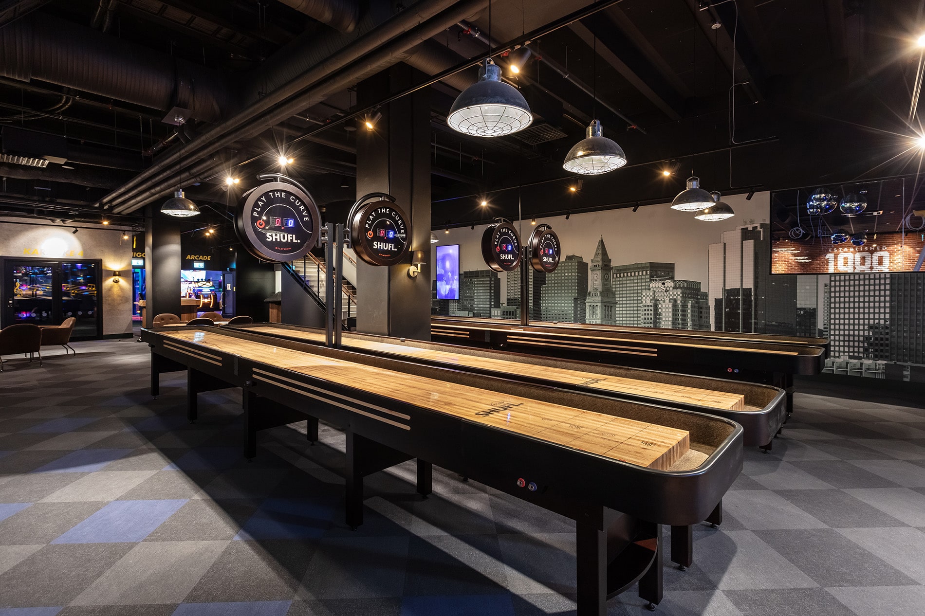 Eventanläggningen sträcker sig över tre våningar i galleria Linden, omfattar 2 800 kvm och bjuder på en mängd aktiviteter. Här finns tre barer, en stor scen (32 kvm), bowling, biljardbord, karaoke, shuffleboard, minigolf, arkadspel och digitala dartspel. Restaurangen har plats för 600 sittande gäster och totalt kan upp till 1 700 personer vistas i lokalerna.